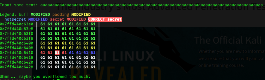 Ok, so we have overflowed the secret value, next we need to use this to grab the flag.