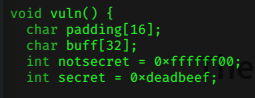 This is the code that caught my attention, it looks like the address assigned to secret is 0xdeadbeef and the value of buff is 32 bytes in hex which is 50 bytes in decimal.